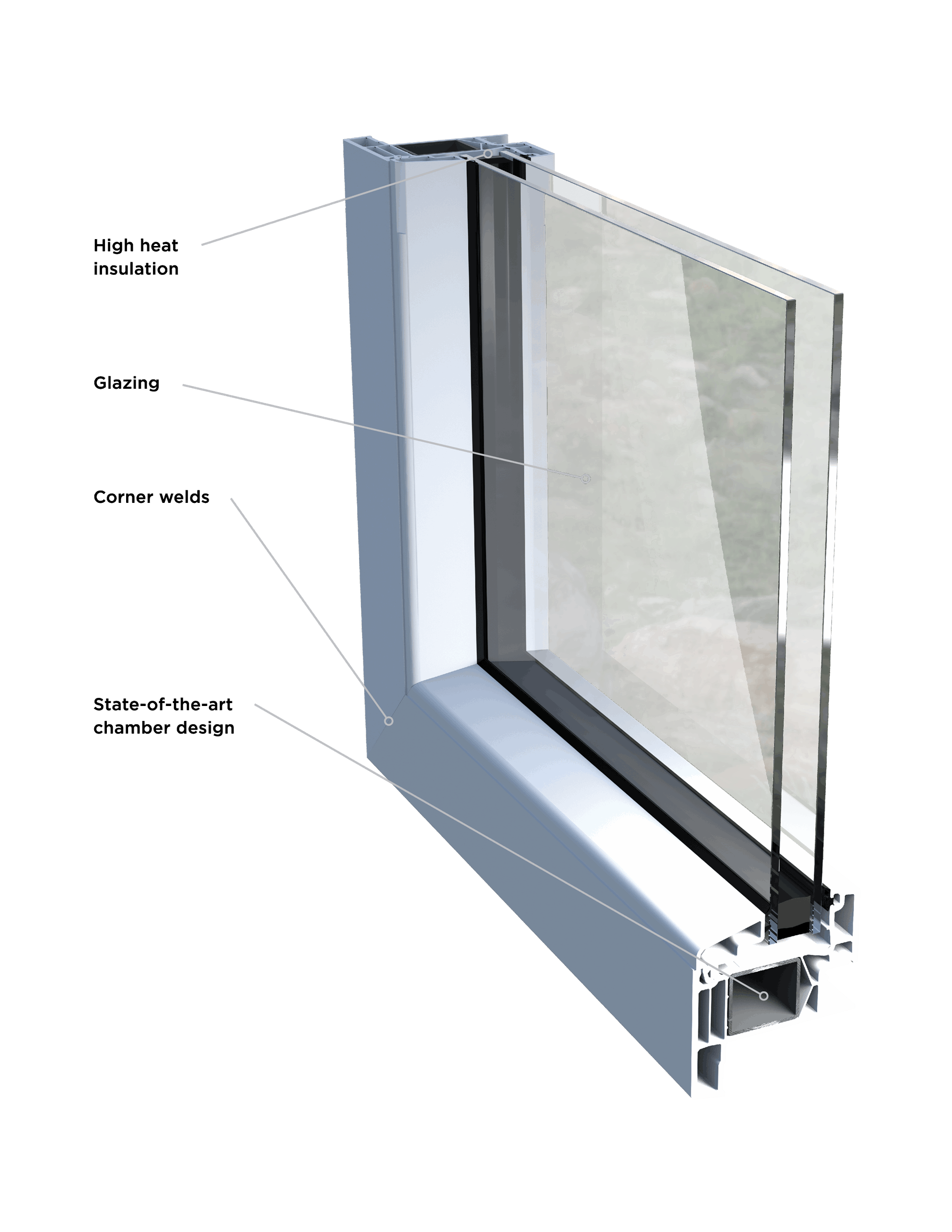 • Super thick profiles for maximum thermal insulation, high quality weather resistance, and strength in high wind zones